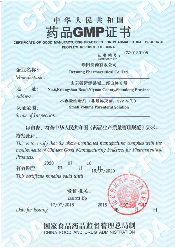 喜訊-瑞陽制藥有限公司順利獲得GMP證書